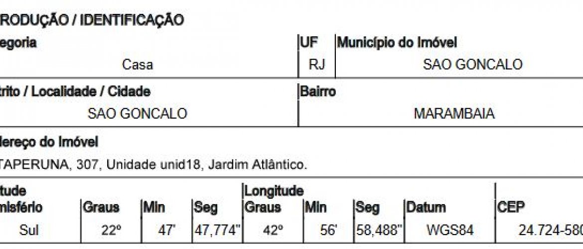 RUA ITAPERUNA,N. 307 UNID 08, MARAMBAIA - CEP: 24724-580, SAO GONCALO - RIO DE JANEIRO nº 307