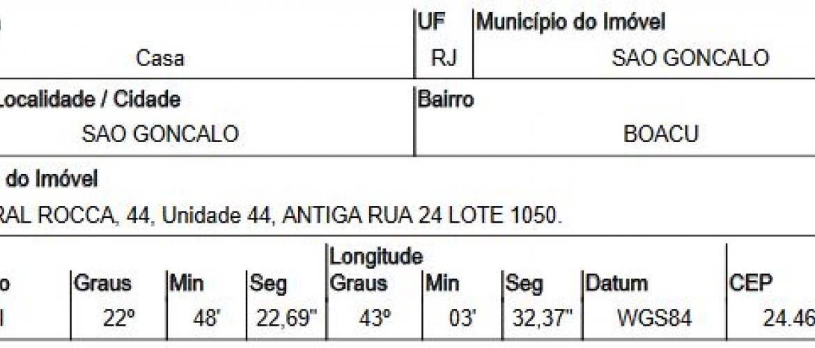 RUA GENERAL ROCCA,N. 44, BOACU - CEP: 24467-040, SAO GONCALO - RIO DE JANEIRO nº 44
