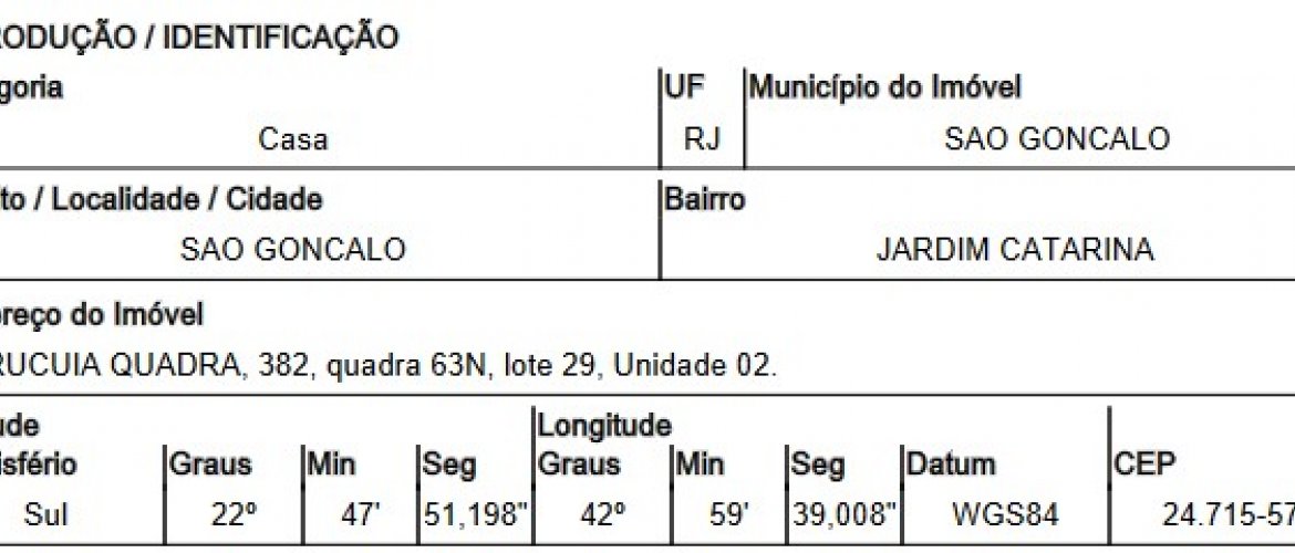 RUA URUCUIA QUADRA,N. 382 CASA-02, JARDIM CATARINA - CEP: 24715-571, SAO GONCALO - RIO DE JANEIRO nº 382