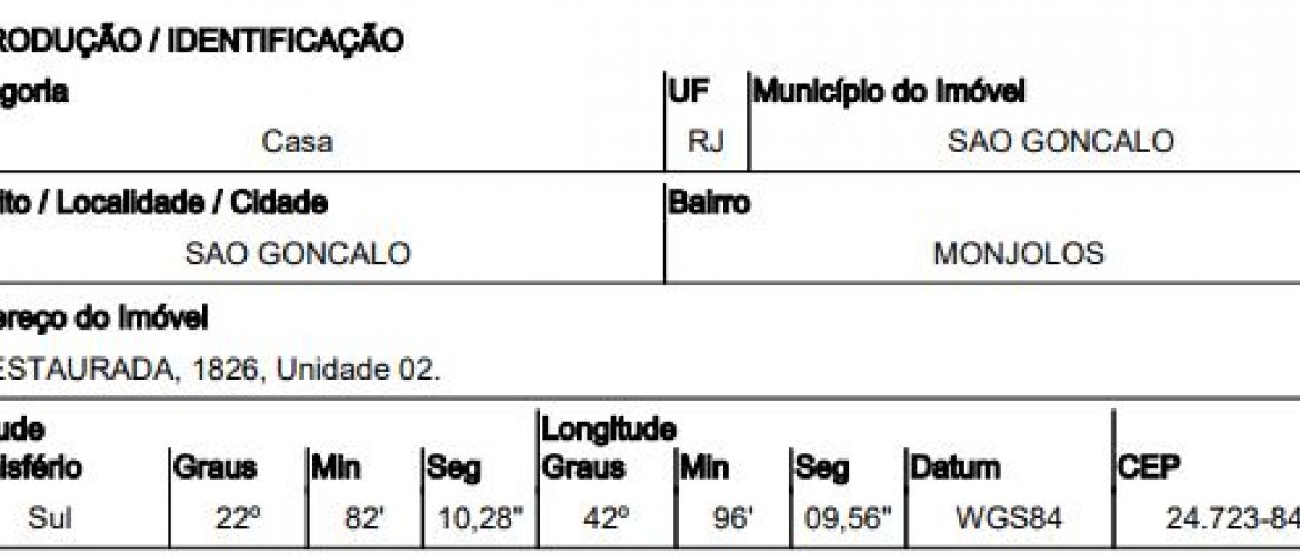 ESTRADA RESTAURADA,N. 1826 CS 02, MONJOLOS - CEP: 24723-840, SAO GONCALO - RIO DE JANEIRO nº 1826