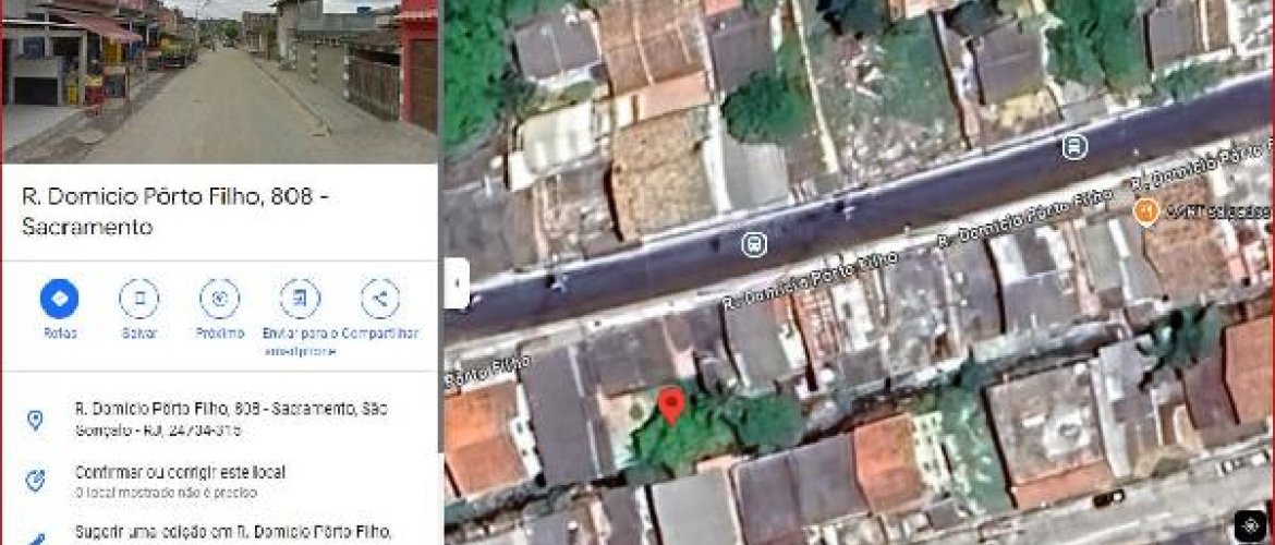 RUA DOMICIO PORTO FILHO,N. 808 CS 01, SACRAMENTO - CEP: 24734-315, SAO GONCALO - RIO DE JANEIRO nº 808