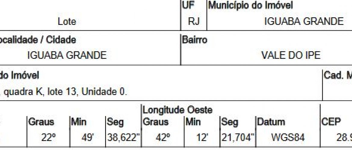RUA 09,N. S/N QD K, LT 13, VALE DO IPÊ - CEP: 28960-000, IGUABA GRANDE - RIO DE JANEIRO nº 13